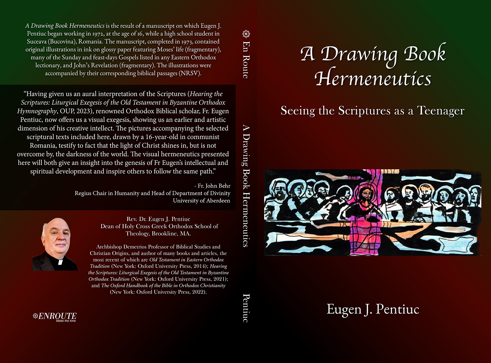 Rev. Dr. John Behr remarks, “Having given us an aural interpretation of the Scriptures (Hearing the Scriptures: Liturgical Exegesis of the Old Testament in Byzantine Orthodox Hymnography, OUP 2023), renowned Orthodox Biblical scholar, Fr. Eugen J. Pentiuc, now offers us a visual exegesis, showing us an earlier and artistic dimension of his creative intellect. The pictures accompanying the selected scriptural texts included here, drawn by a 16-year-old in communist Romania testify to the fact that the light of Christ shines in, but is not overcome by, the darkness of the world. The visual hermeneutics presented here both give an insight into the genesis of Fr. Eugen’s intellectual and spiritual development and will inspire others to follow the same path.”