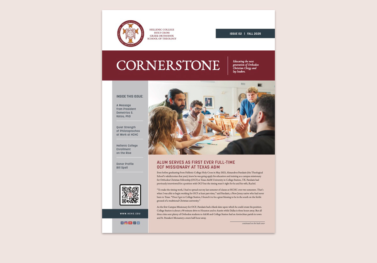 Said Alexandros Pandazas (MDiv ’23), “The point of a missionary is to build up the campus ministry but it’s also to build discipleship by experiencing a model of faith. I experienced my model of faith at Holy Cross. I’m constantly referring to my notes and classwork. That’s when I realized that all my classes helped prepare me for my work with OCF.”