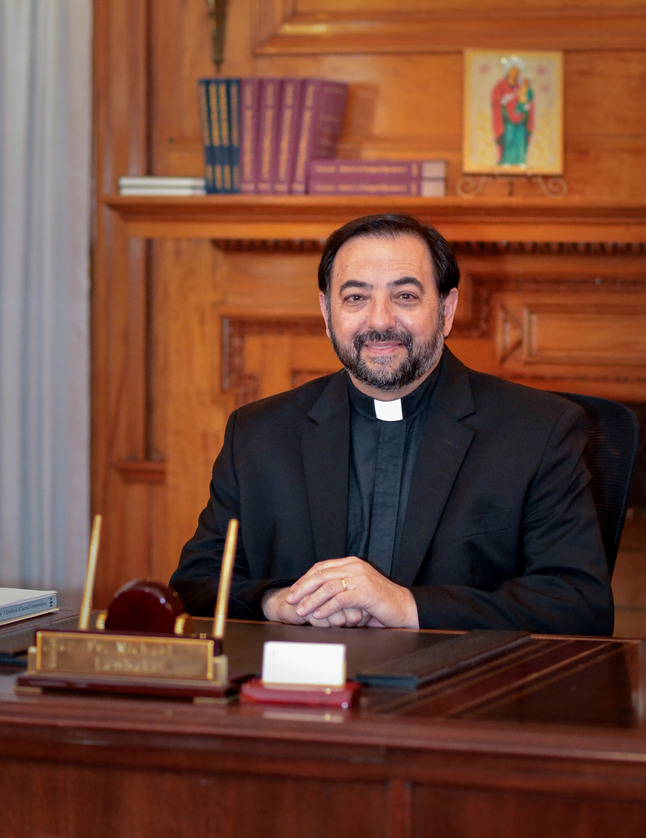 Interim Hellenic College Holy Cross President Rev. Fr. Michael Lambakis returned to campus in August 2025 as the Dean of Students, following nearly 20 years of service to the Greek Orthodox Archdiocese and the Annunciation Orthodox Church in Houston, TX, where he began as an assistant priest in 2006 and became its proistamenos is 2010.